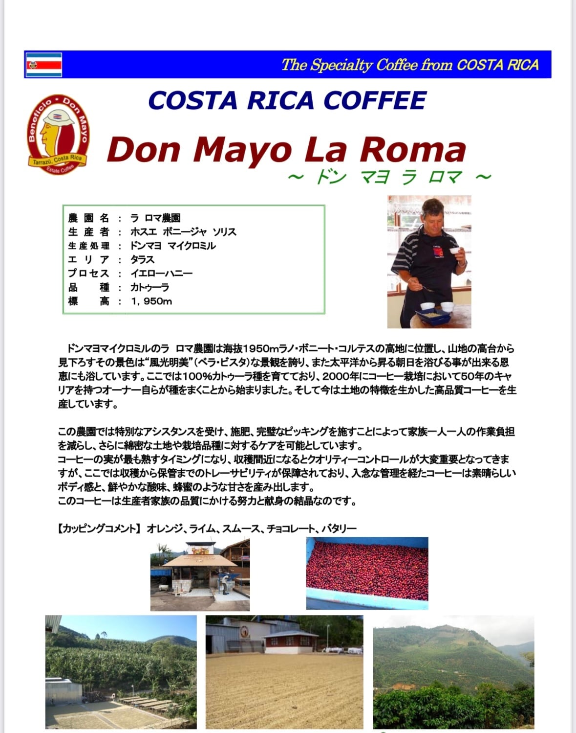 コスタリカ イエローハニー 浅煎り 100g Don Mayo La Roma